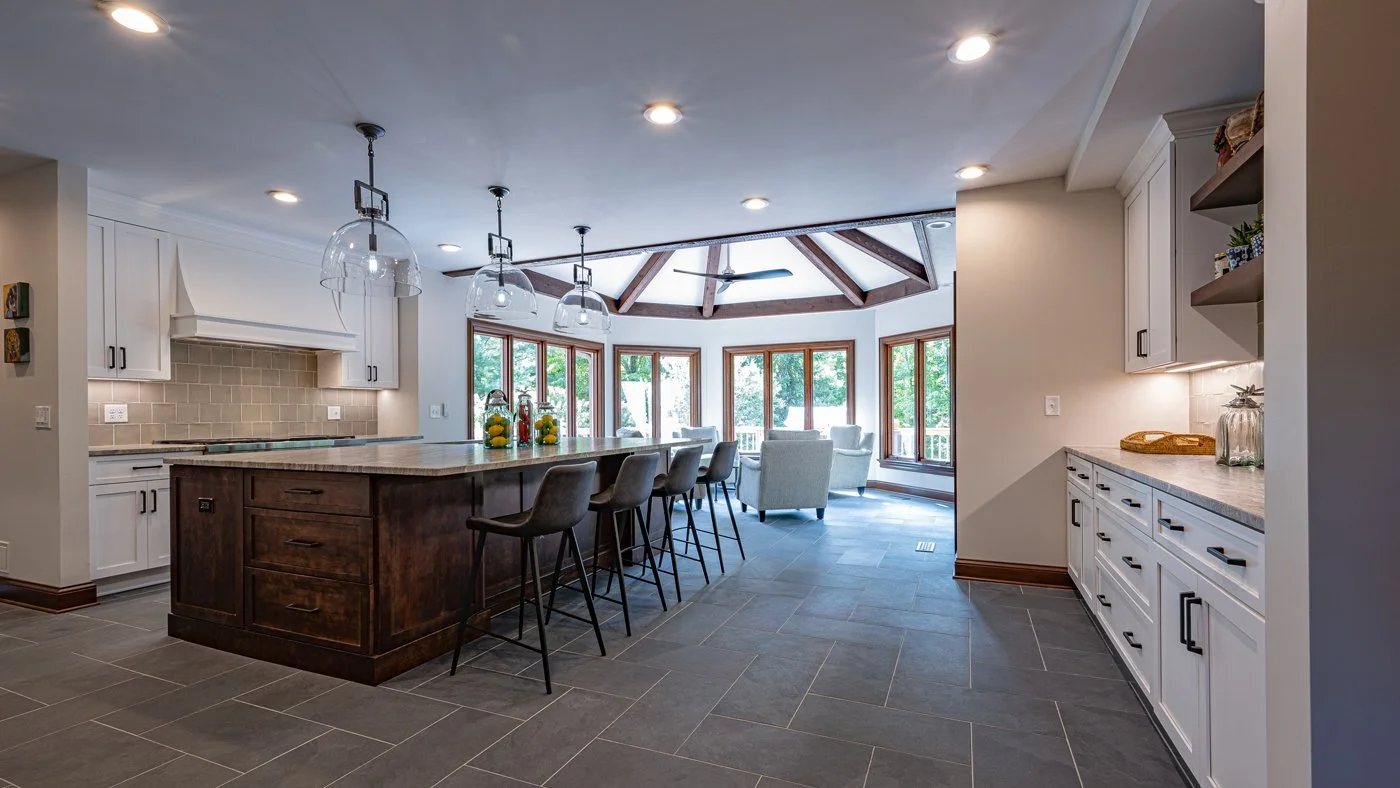 Kitchen lighting also has come front and center. Homeowners in Northeast Ohio require task lighting to make meal preparation more accessible and enjoyable and ambient lighting to create a welcoming and warm atmosphere for family members and guests. An effective lighting plan is required to help separate spaces in open floor plan kitchens and homes. We often specify pendants or chandeliers over an island but recommend ambient lighting solutions in connected living and eating spaces.