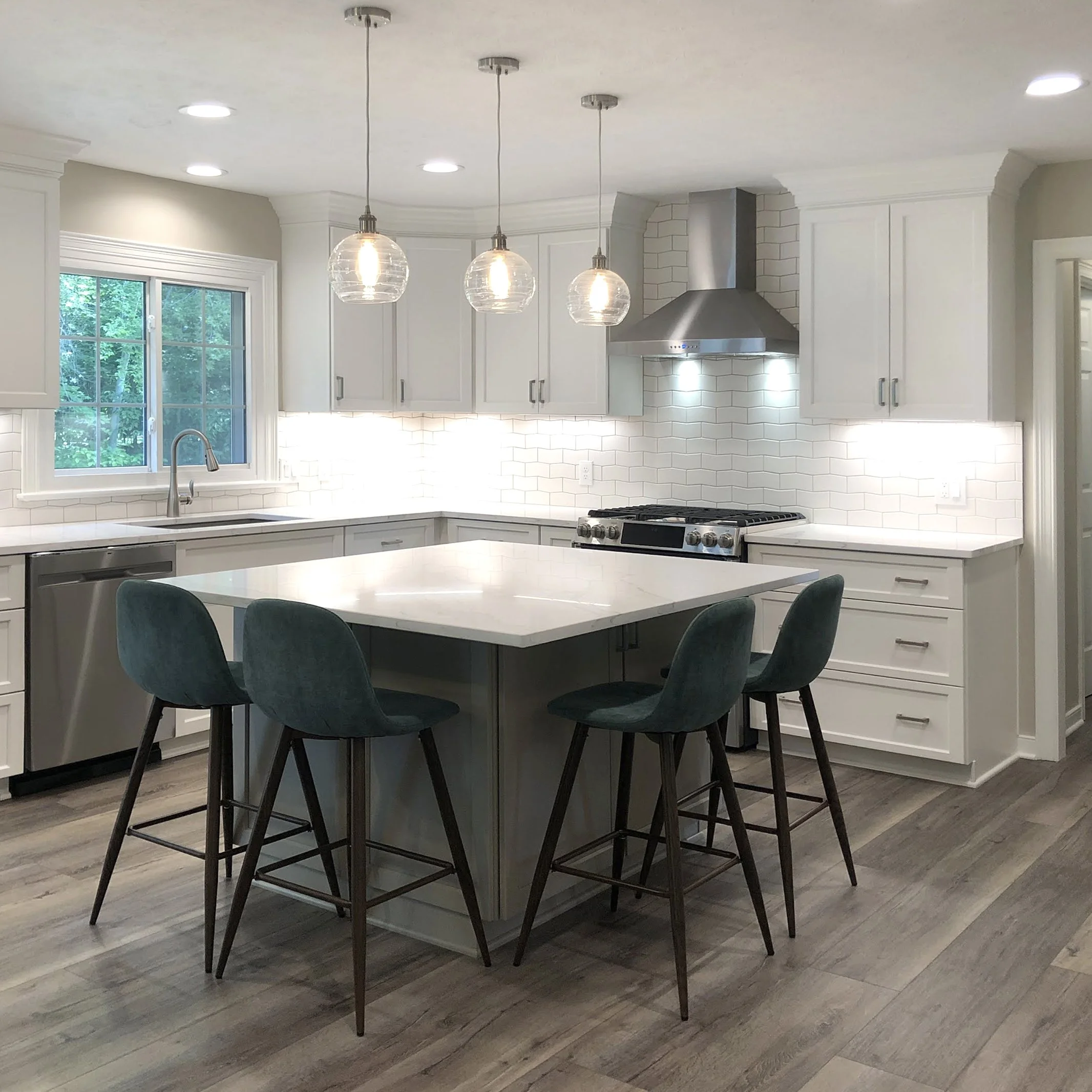 In this layout, a freestanding island sits at the center of the room. It’s ideal for those who love to cook and entertain, offering additional workspace, seating, and storage. Islands can also house appliances, such as cooktops or sinks.